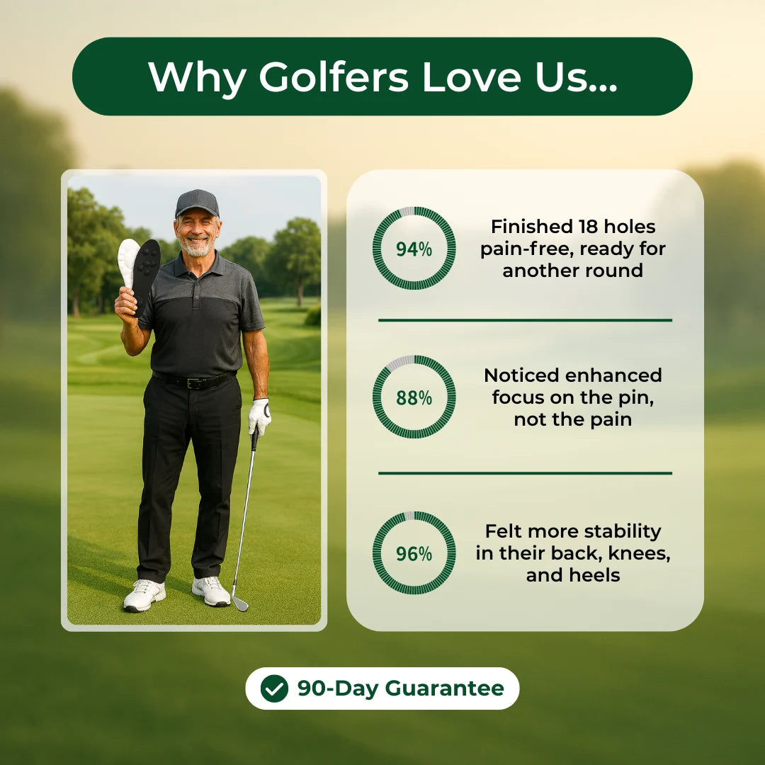 If you don't notice improved comfort on the course within 90 days, send them back for a full refund — no questions asked.